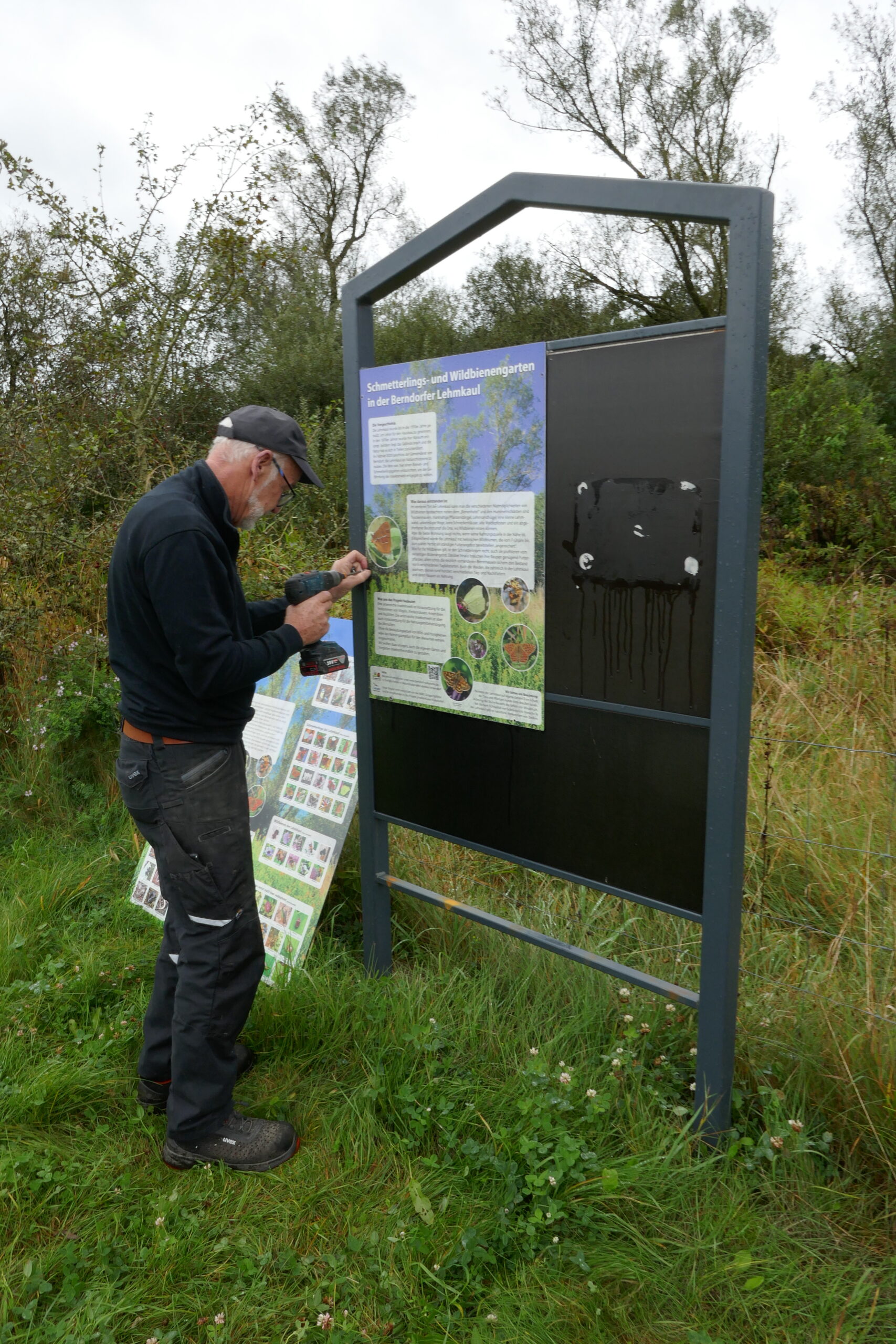 Im Mai 2024 war das bisherige Holzgestell für die Infotafel vor der Lehmkaul durch ein Metallgestell ersetzt worden, dieses Gestell entspricht den anderen Infotafeln in Berndorf und bietet mehr Platz für weitere Informationen. So konnten im September 2024 neben der ursprünglichen Tafel 2 Tafeln hinzugefügt werden, die ein Spektrum von bisher in der Lehmkaul erfassten Schmetterlingen, Wildbienen, Käfern, verschiedenen anderen Insekten, Amphibien, Reptilien und Vögeln zeigen. Außerdem wurde neben der Infotafel eine Plexiglasbox installiert, worin Informationsbroschuren, Flyer u.a. zum Mitnehmen angeboten werden.