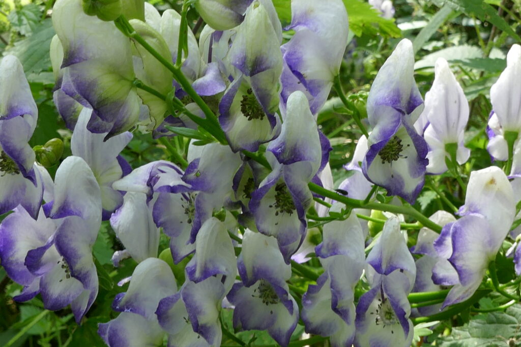 Bunter Eisenhut (Aconitum variegatum): An einer einzigen Stelle im lichten Gebüsch der Lehmkaul wächst eine Pflanze, die im August durch ungewöhnlich attraktive Blüten überrascht. Wahrscheinlich wurde sie irgendwann einmal hier gezielt angepflanzt, findet man sie doch selten in alten Bauerngärten als Zierpflanze. Vielleicht musste ja ein Bauerngarten einer neuen Garage weichen? In der weiteren Umgebung von Berndorf, z.B. im Bolsdorfer Tälchen, findet sich Eisenhut immer mal wieder, allerdings ist es da der Blaue Eisenhut (beide Arten unterscheiden sich durch die Form des Helms, beim Bunten Eisenhut ist dieser doppelt so hoch wie breit, beim Blauen Eisenhut ist der Helm breiter als hoch). Trotz seiner Schönheit gibt es eine Tücke: Eisenhut ist eine der giftigsten Pflanzen Europas. Für Gärtner gibt es sogar den Rat, beim Umgang mit Eisenhut Handschuhe zu tragen. Hummeln und andere Wildbienen haben mit dem Gift kein Problem, sie genießen den reichlichen Nektar der Blüten. Der Bunte Eisenhut ist eine streng geschützte Pflanze.