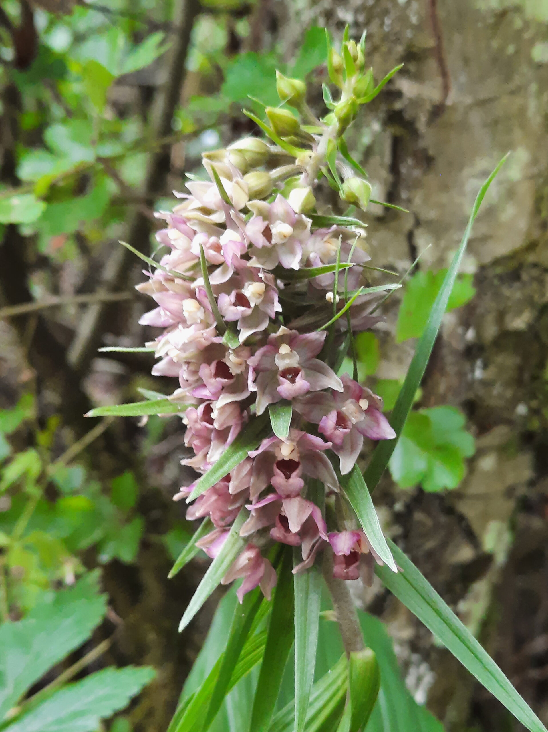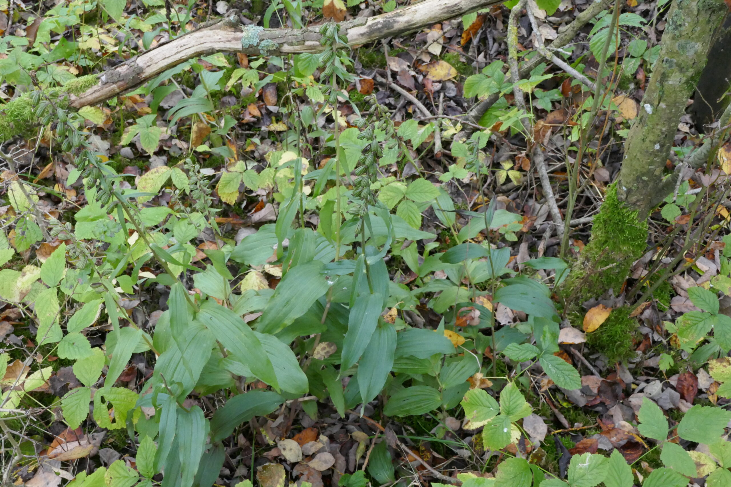 Im mittleren und hinteren Teil der Lehmkaul findet sich in lichtem Gebüsch ein kleiner Bestand an Breitblättriger Stendelwurz (Epipactis helleborine), der einzigen Orchideenart, die bisher in der Lehmkaul entdeckt wurde. Vielleicht existieren noch mehr Pflanzen, denn sie sind leicht zu übersehen, da (im Juli und August) ihre Blüten nicht mit grellbunten Farben locken, ihre Schönheit offenbart sich erst bei genauerem Hinsehen. Die Breitblättrige Stendelwurz zählt bisher nicht zu den gefährdeten Orchideenarten, dennoch steht sie unter besonderem Schutz. Die Blüten werden durch Faltenwespen, Bienen und Fliegen bestäubt. Die Samen reifen in Kapseln heran, die sich bei Trockenheit öffnen, und ihre staubfeinen Samen (10000 Samen pro Kapsel!) werden mit dem Wind kilometerweit verbreitet. Man könnte also sagen, dass ganz Berndorf und auch die Dörfer im Umkreis mit Samen der Breitblättrigen Stendelwurz aus der Lehmkaul heraus versorgt werden.