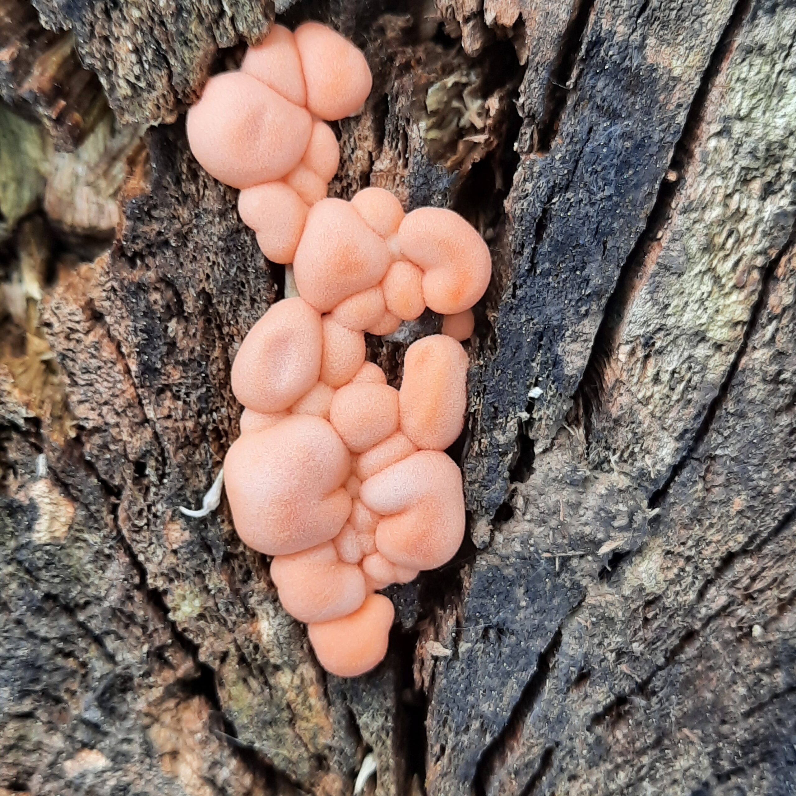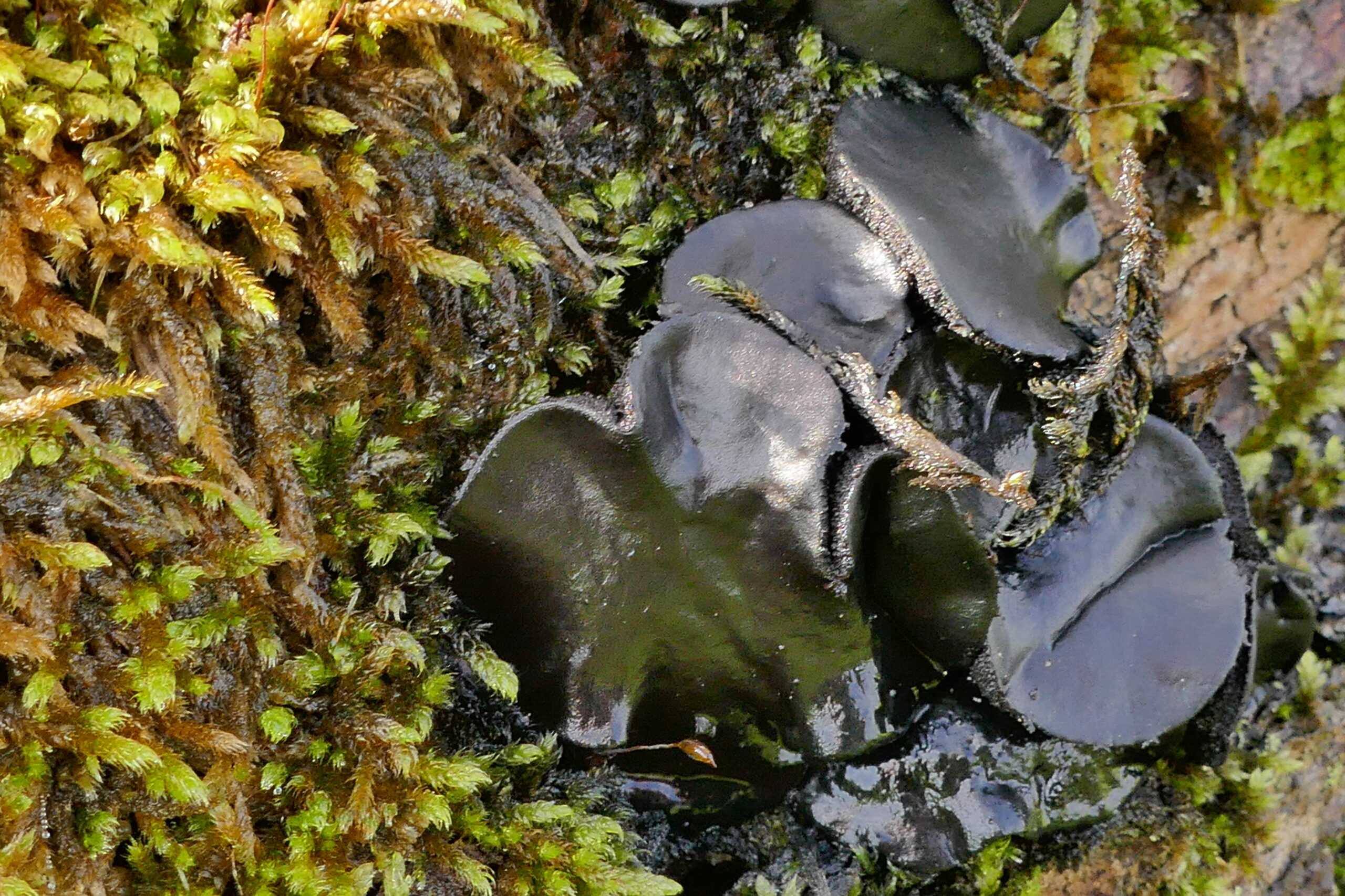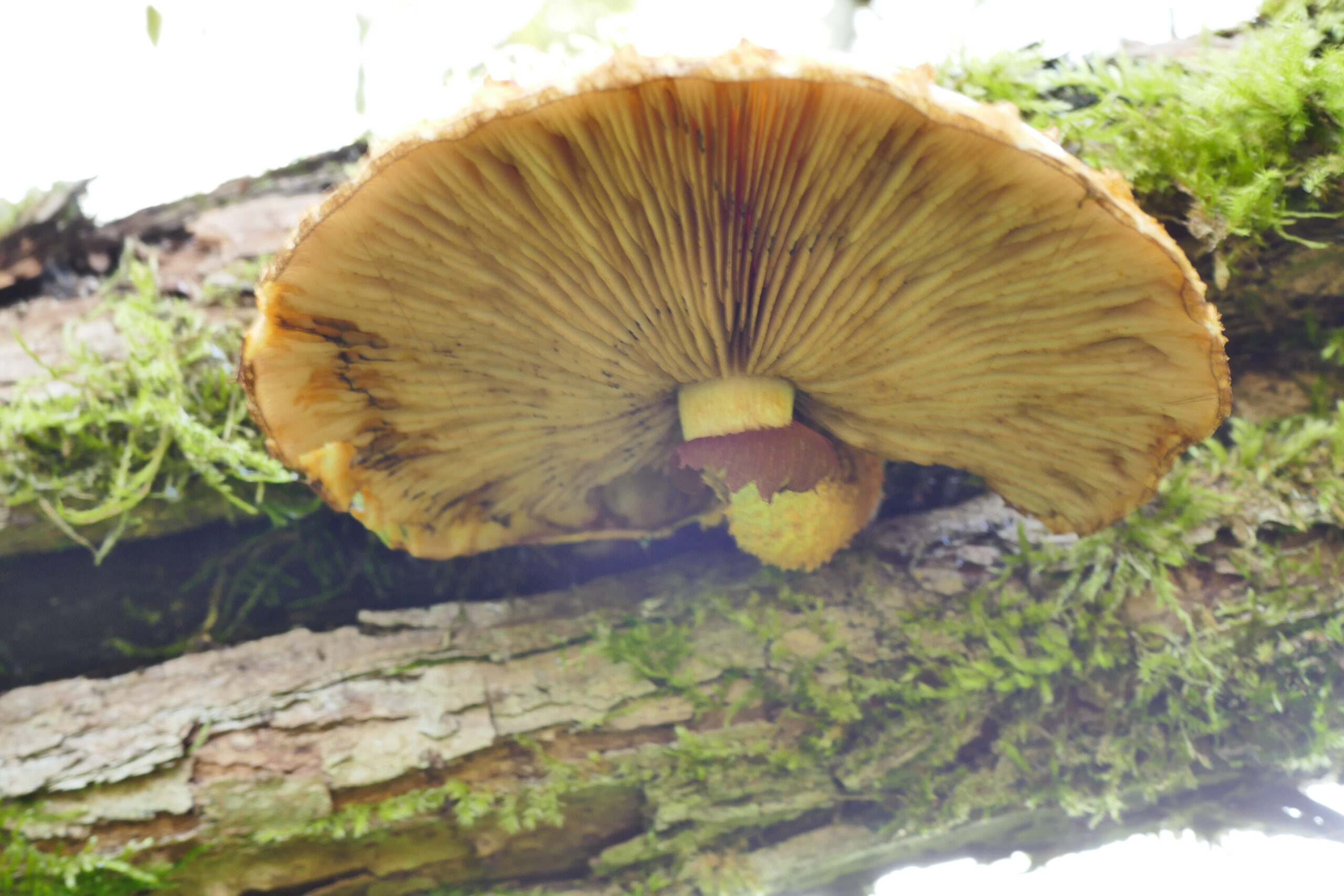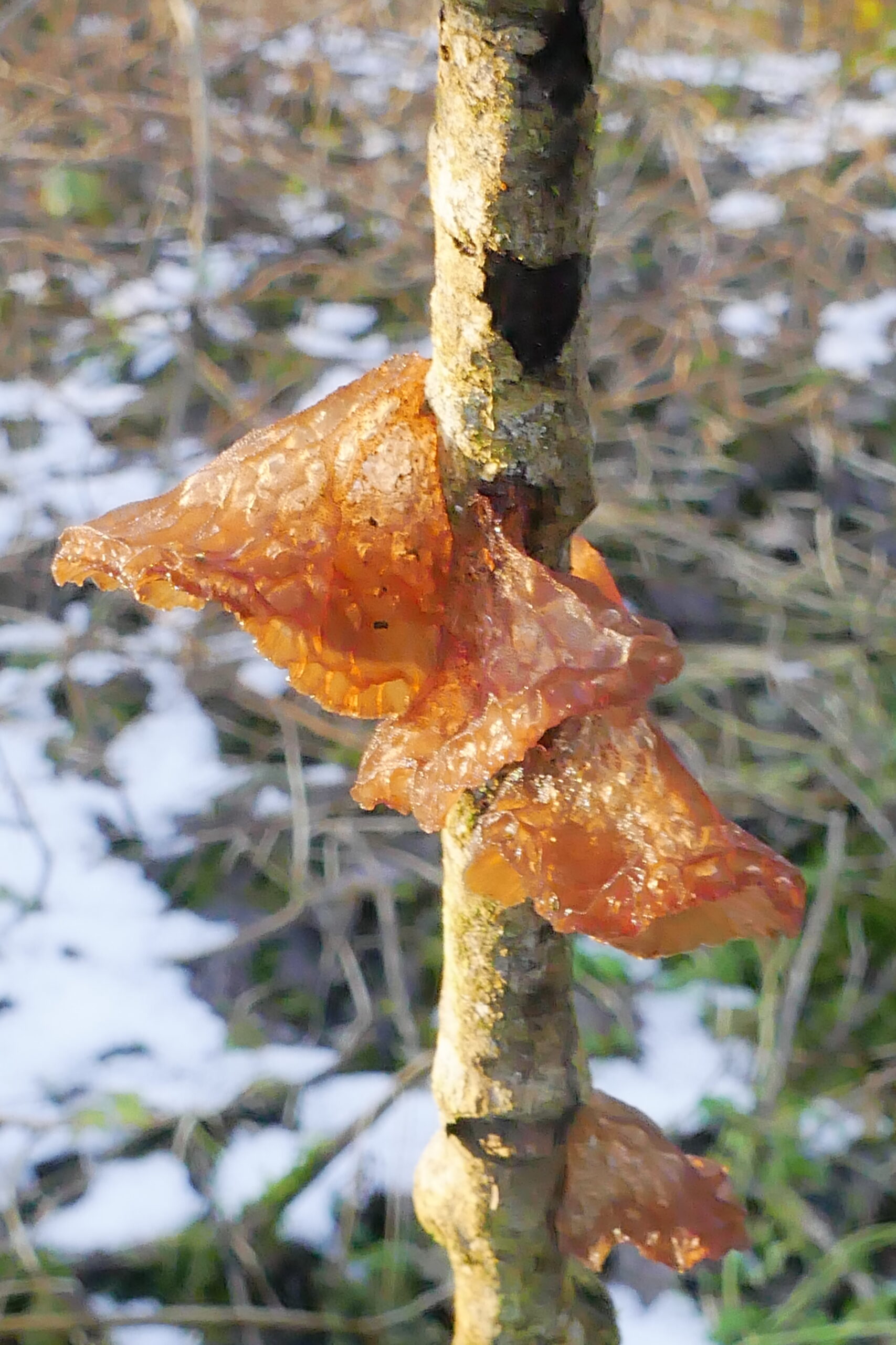 Die Lehmkaul bietet ein interessantes Spektrum an Pilzen, die von dem reichen Totholzvorkommen und der dauernden Feuchtigkeit in den baum- und buschbestandenen Bereichen profitieren. Die Menge an Speisepilzvorkommen ist so gering, dass ein Sammeln absolut nicht lohnt, aber es bleibt die Freude an der Entdeckung und Betrachtung. Und natürlich haben die Pilze eine wichtige Funktion im Kreislauf der Natur. Noch steht eine systematische Erfassung der Pilze in der Lehmkaul aus, abgebildet sind u.a. der Rote Becherling (seltene und nach Roter Liste gefährdete Pilzart, RL 3!), das Judasohr, der Büschelige Faserling(?) und der Schopftintling.