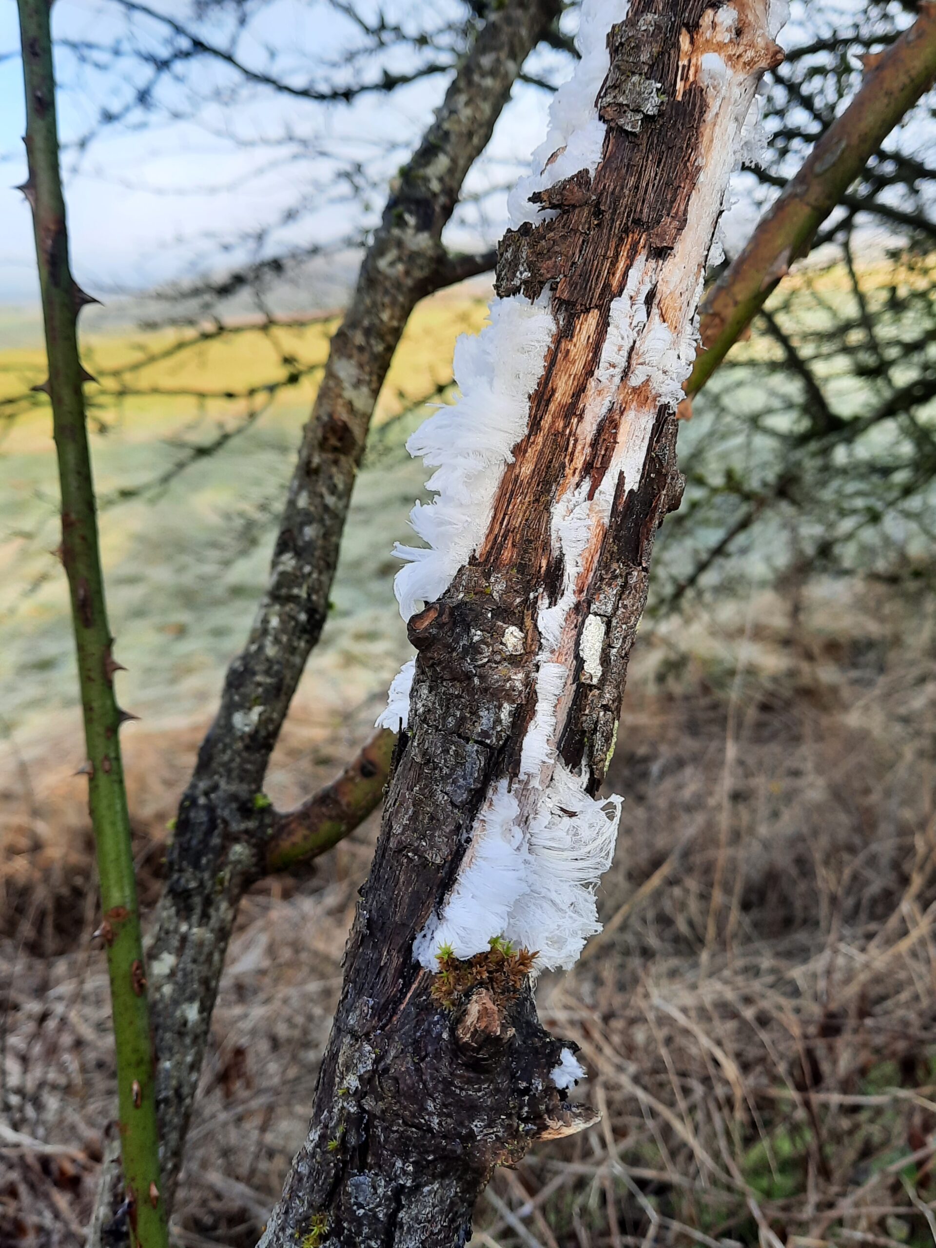 Ein seltenes, 2025 in der Lehmkaul beobachtetes Phänomen ist die Bildung von haarfeinen Eiskristallen an Totholz. Voraussetzung für die Bildung von Haareis ist die Durchsetzung von feuchtem Totholz mit einem Pilzgeflecht, welches durch seinen Stoffwechsel Gase produziert, die Wasser aus dem Holz nach draußen drücken. Wenn es nicht viel kälter als 0 Grad ist und die Luftfeuchtigkeit hoch ist, kann das Wasser dabei zu sehr langen Eisfäden gefrieren, und man kann bizarre Eisgebilde bewundern, die auch Eiswolle oder Engelshaar genannt werden.