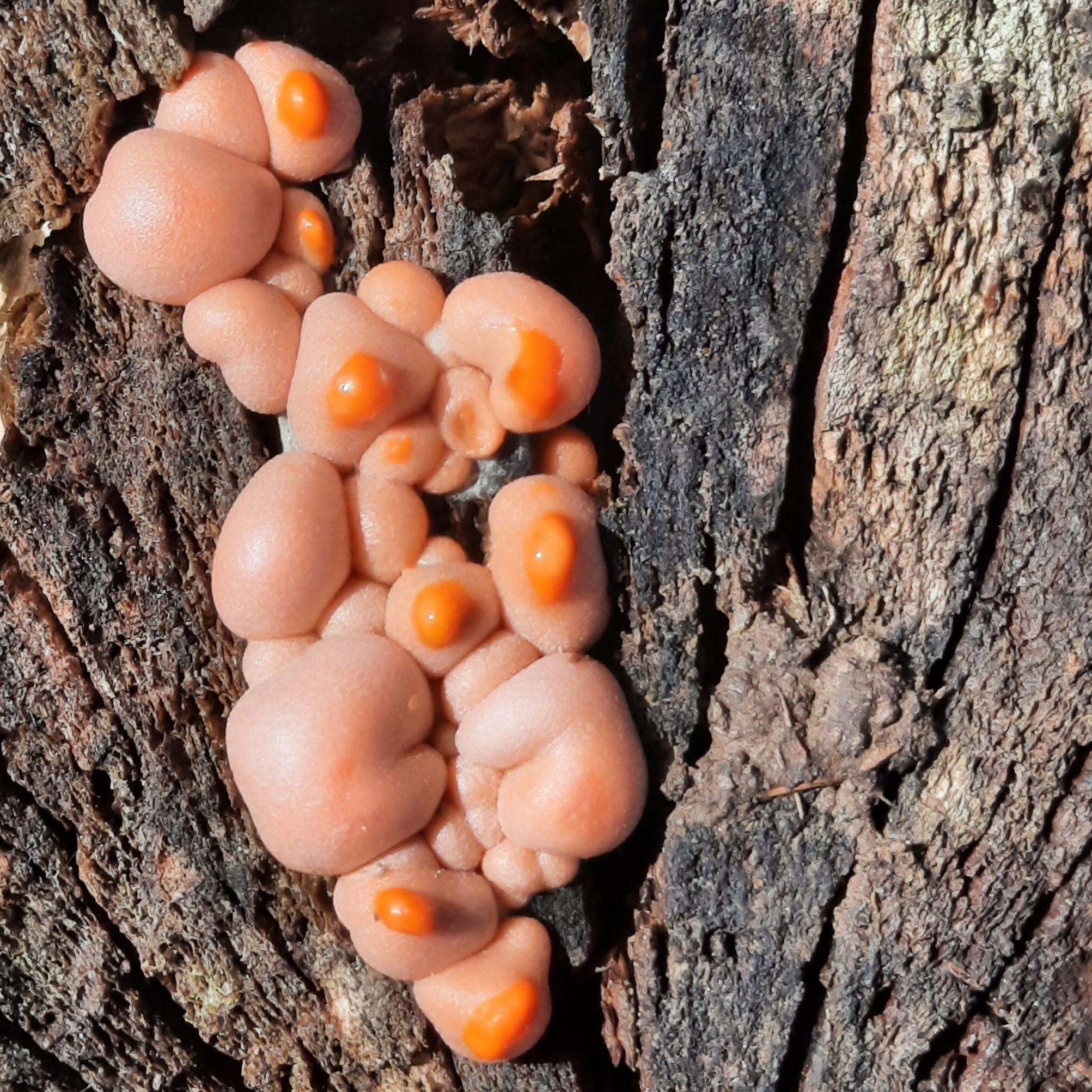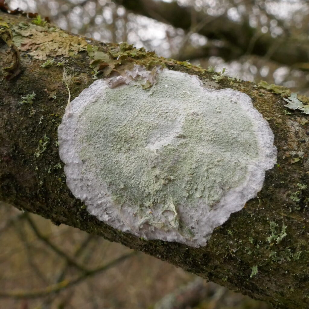 Auch wenn Pilze, Schleimpilze und Flechten zu unterschiedlichen biologischen Systemen gehören, seien an dieser Stelle die in der Lehmkaul gefundenen Flechten (Symbiose aus Pilzen und Algen) und Schleimpilze (Einzellige Lebewesen, keine Pilze) aufgeführt. Die wissenschaftlichen Erkenntnisse zu Flechten und Schleimpilzen sind sehr spannend, für weitere Informationen siehe: https://www.nabu.de/tiere-und-pflanzen/pilze-und-flechten/14125.html und https://de.wikipedia.org/wiki/Schleimpilze