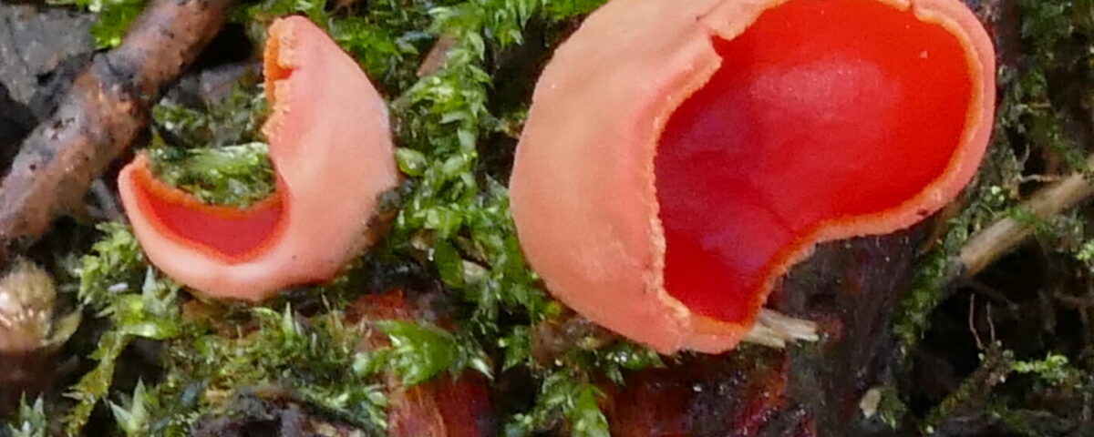 Roter Becherling (seltene und nach Roter Liste gefährdete Pilzart, RL 3!), Judasohr, Kreiseldrüsling, Schopftintling, Gesäter Tintling, Schmetterlingstramete, Striegelige Tramete, Winter-Stielporling, Gemeiner Schmutzbecherling, Großer Scheidling, Weiden-Feuerschwamm, ……..; (a= Hut von oben , b= Hut von unten vom gleichen Pilz)