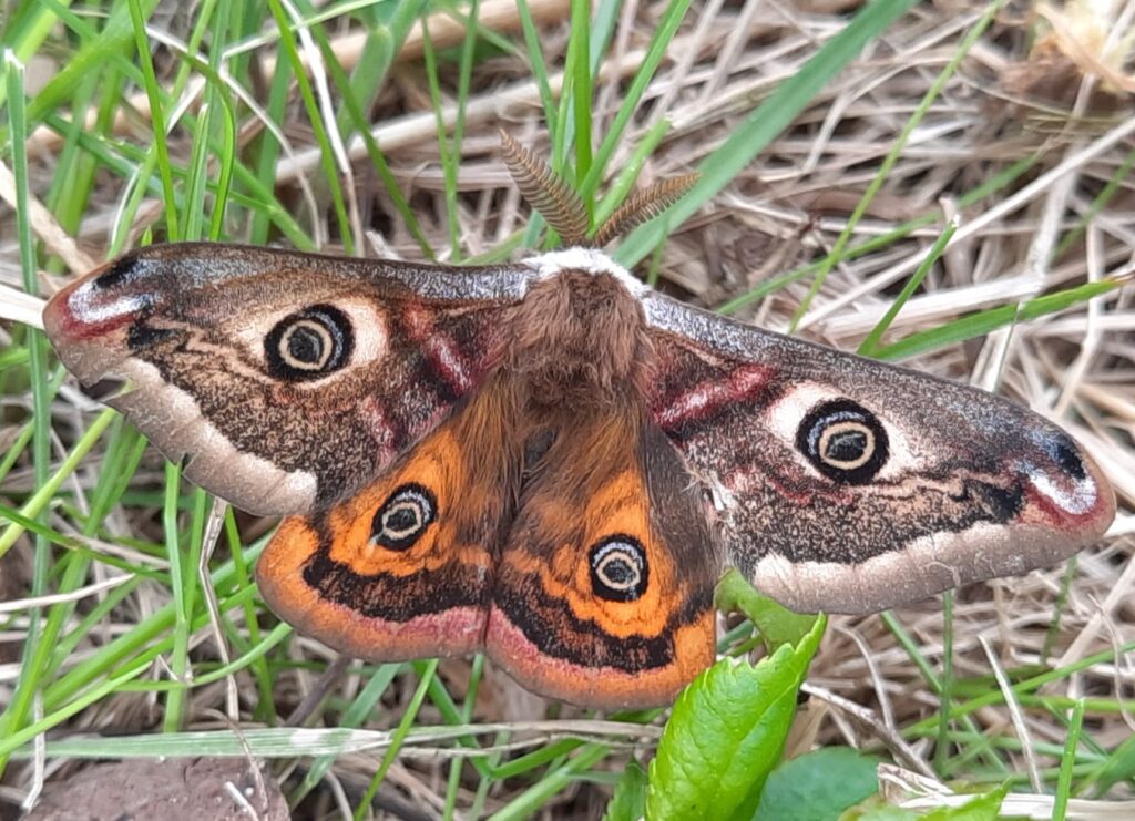 Eine weitere Methode der Erfassung, die nur bei wenigen Falterarten möglich ist, besteht im Anlocken mit Pheromonen. Pheromone sind Sexuallockstoffe, die auch in sehr starker Verdünnug wahrgenommen werden und die Männchen zu den Weibchen führen. Im Sommer 2023 konnten mit Hilfe von Pheromonen 2 Glasflügler-Schmetterlingsarten in der Lehmkaul nachgewiesen werden. Im Frühjahr 2024 wurde mit Hilfe eines Pheromons auch die Anwesenheit des Kleinen Nachtpfauenauges nachgewiesen.