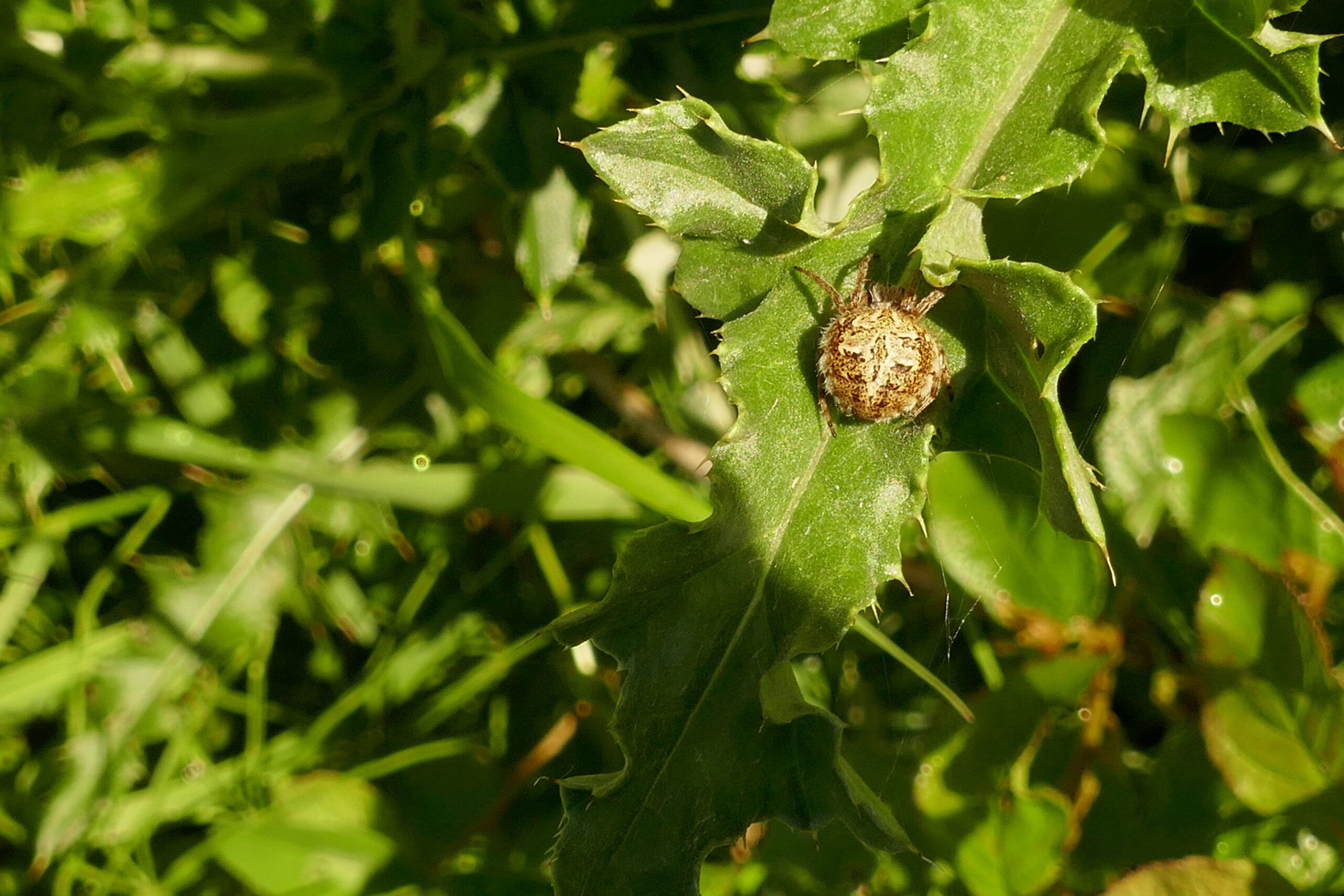 Die Spinnen, oder genauer gesagt, die Webspinnen gehören zu der Klasse der Spinnentiere. Im Unterschied zu den Insekten haben Webspinnen 8 Beine, also 4 Beinpaare, während sich Insekten mit 3 Beinpaaren begnügen müssen. Die meisten Spinnen leben räuberich und ernähren sich hauptsächlich von Insekten. Von den Spinnen wiederum leben viele andere Tierarten, vor allem die Vögel, aber auch bei Amphibien, Reptilien und Fledermäusen stehen sie auf der Speisekarte. Die Listspinne ist die in der Lehmkaul am häufigsten beobachtete Spinnenart, als seltene Besonderheit wurde eine Erdbeerspinne nachgewiesen, die nach Roter Liste in die Stufe 3 = gefährdet eingestuft wird. In Deutschland wurden bisher rund 1000 Webspinnenarten nachgewiesen, eine Reihe konnte schon in der Lehmkaul fotografiert werden, wie die folgende Fotogalerie zeigt.