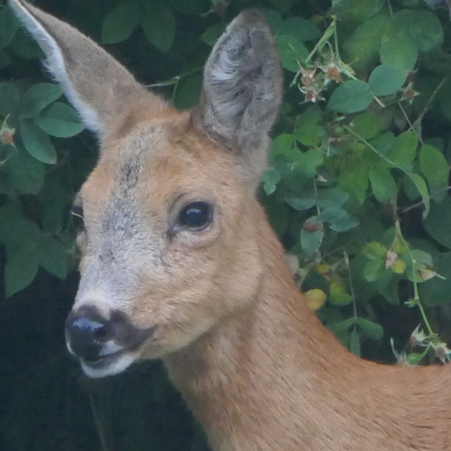 Rehe suchen die Lehmkaul regelmäßig auf und hinterlassen eindeutige Spuren, an denen man sie erkennen kann: sei es die Losung, die Spuren im Schnee, die abgebissenen Blütenköpfe (Rehe sind Feinschmecker und nehmen nur das Beste von der Pflanze) oder die Baumstämmchen, an denen die Rinde in Fetzen herunter hängt, hier haben Rehböcke versucht, den abgestorbenen Bast ihres neuen Gehörns abzureiben (Fegen).