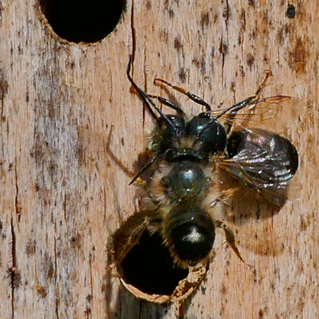 Um eine Fläche für Wildbienen und Wespen attraktiv zu machen, braucht es nur wenig: geeignete Nistmöglichkeiten, Pollen und Nektar liefernde Pflanzen und Verzicht auf den Einsatz von Chemie.