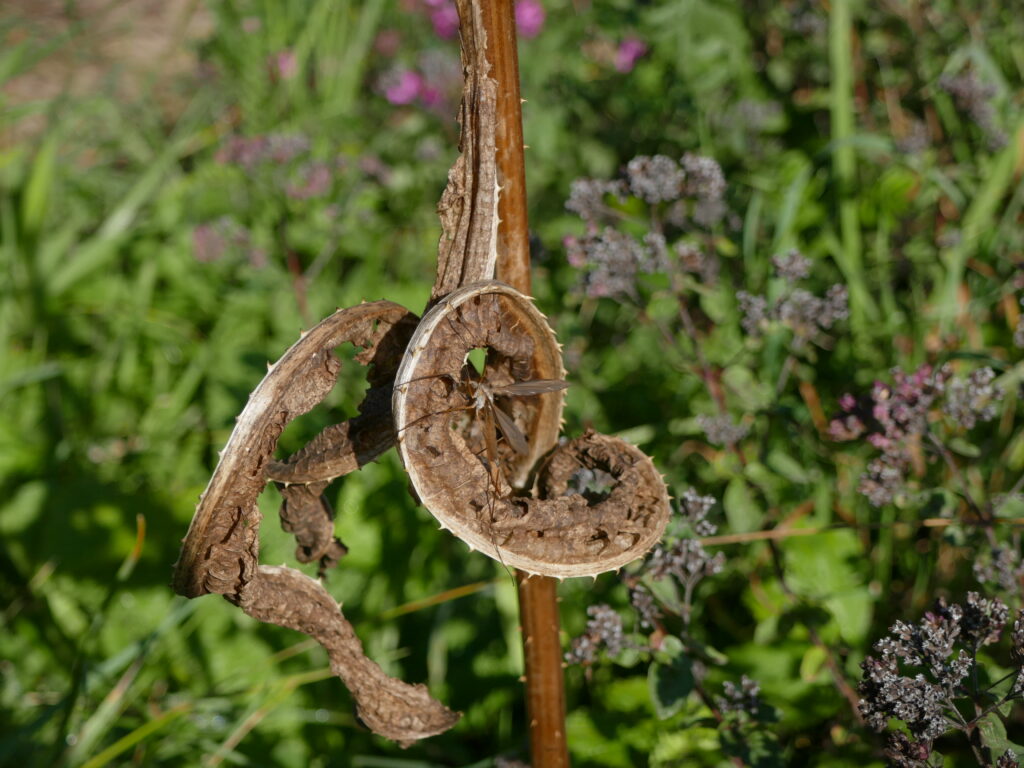 Die Bestimmung von Heuschrecken ist nicht einfach. Viele Arten zeigen eine große Bandbreite an unterschiedlichen Färbungen, alle Arten durchlaufen verschiedene Larvenstadien mit entsprechend vom „fertigen“ Insekt (Imago) abweichendem Aussehen, Männchen unterscheiden sich manchmal deutlich von den Weibchen und dazu kommt noch ein gelegentliches Auftreten von langflügeligen Exemplaren von Heuschrecken, die normalerweise kurzflügelig sind. Für die Hilfe bei der Bestimmung der ersten Arten ein herzliches Dankeschön an Torsten Weber, der dadurch Mut gemacht hat, sich intensiver mit den Heuschrecken zu beschäftigen.