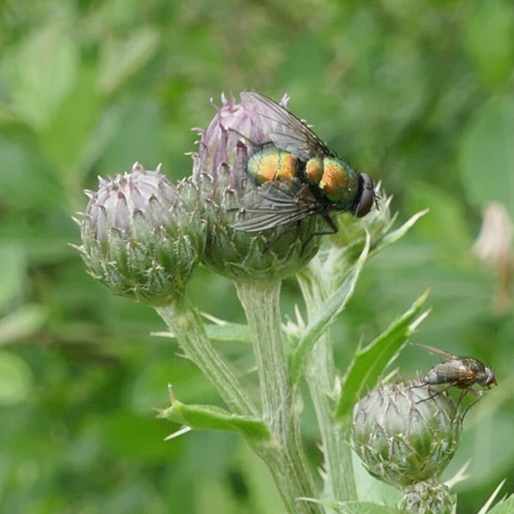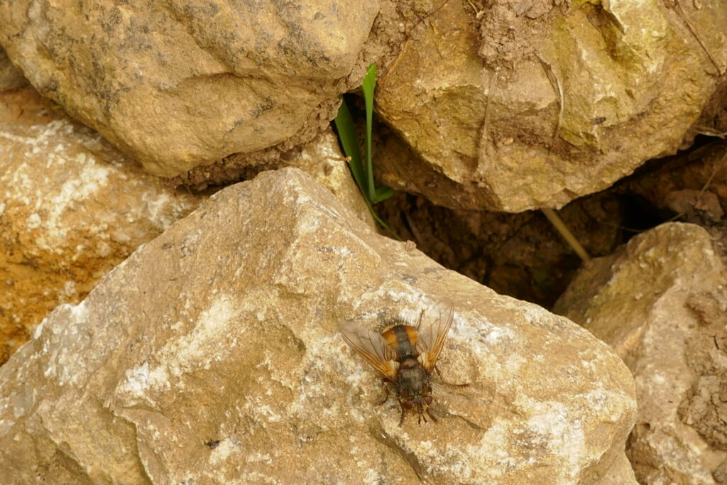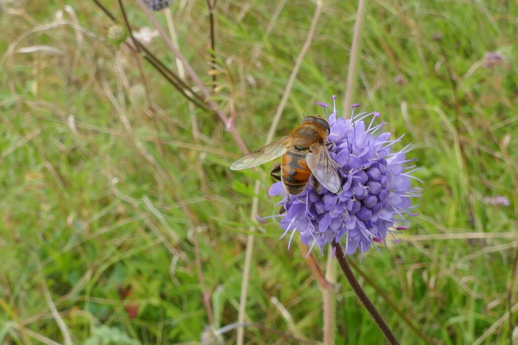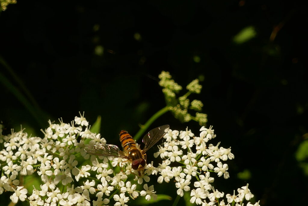 Wenn im Spätsommer die Kanadische Goldrute blüht, sind es vor allem Fliegen, die sich massenhaft auf den Blüten einfinden, um sich an Pollen und Nektar zu bedienen. In Deutschland gibt es sicher mehr als 5000 Fliegenarten, allein von der Familie der Schwebfliegen sind mehr als 400 Arten bekannt. Die genaue Artbestimmung ist oft schwierig, die unten gezeigten Fliegen-Fotos aus der Lehmkaul zeigen die Vielfalt, ohne immer eine genaue Bestimmung garantieren zu können.