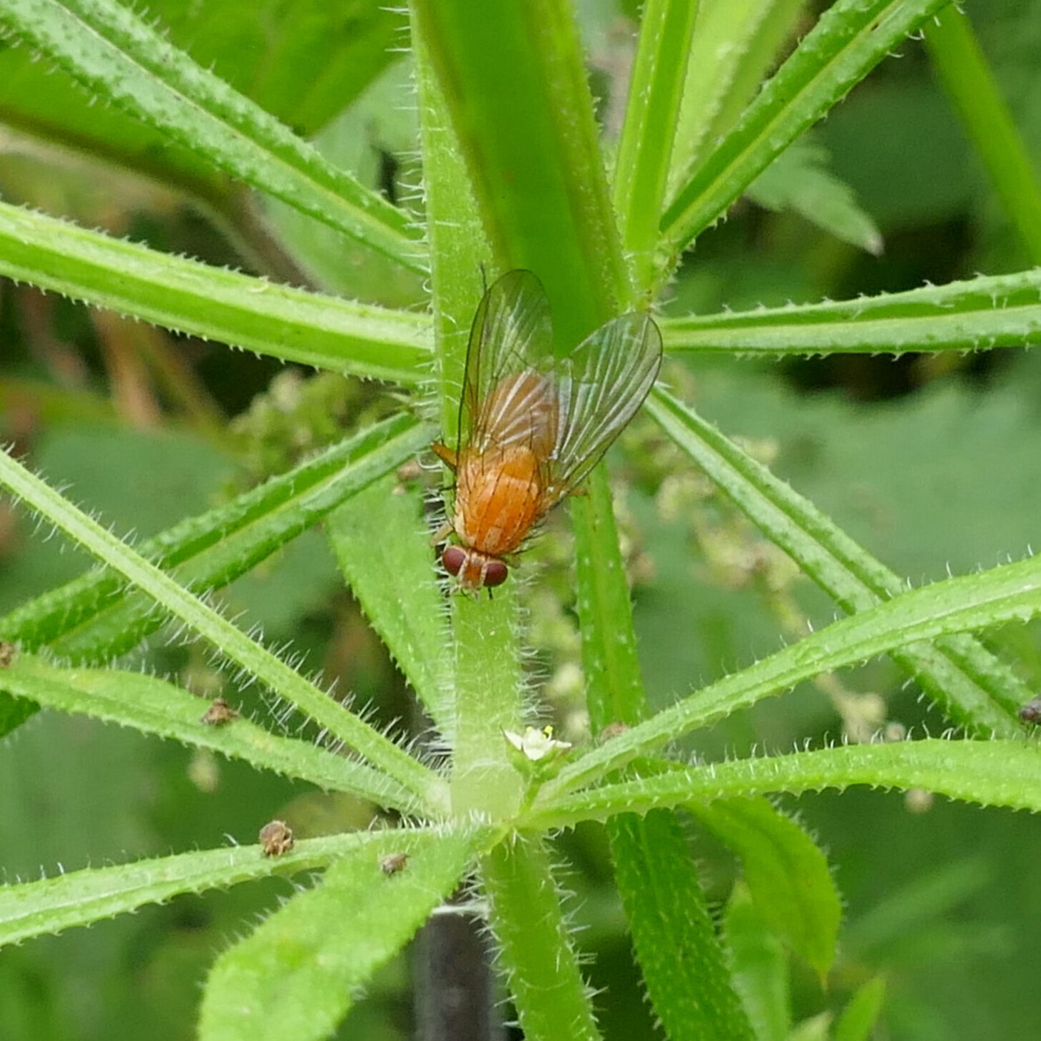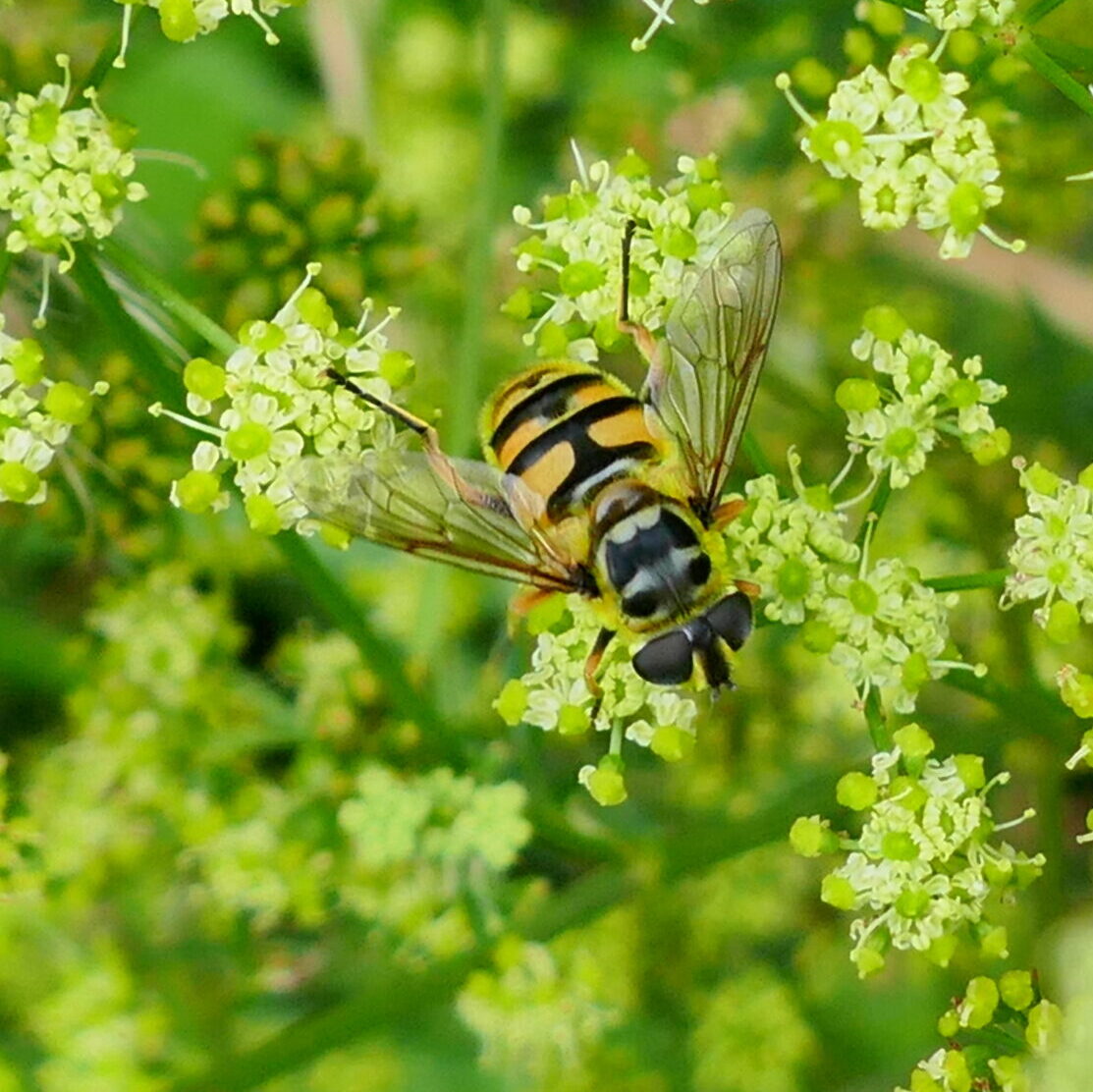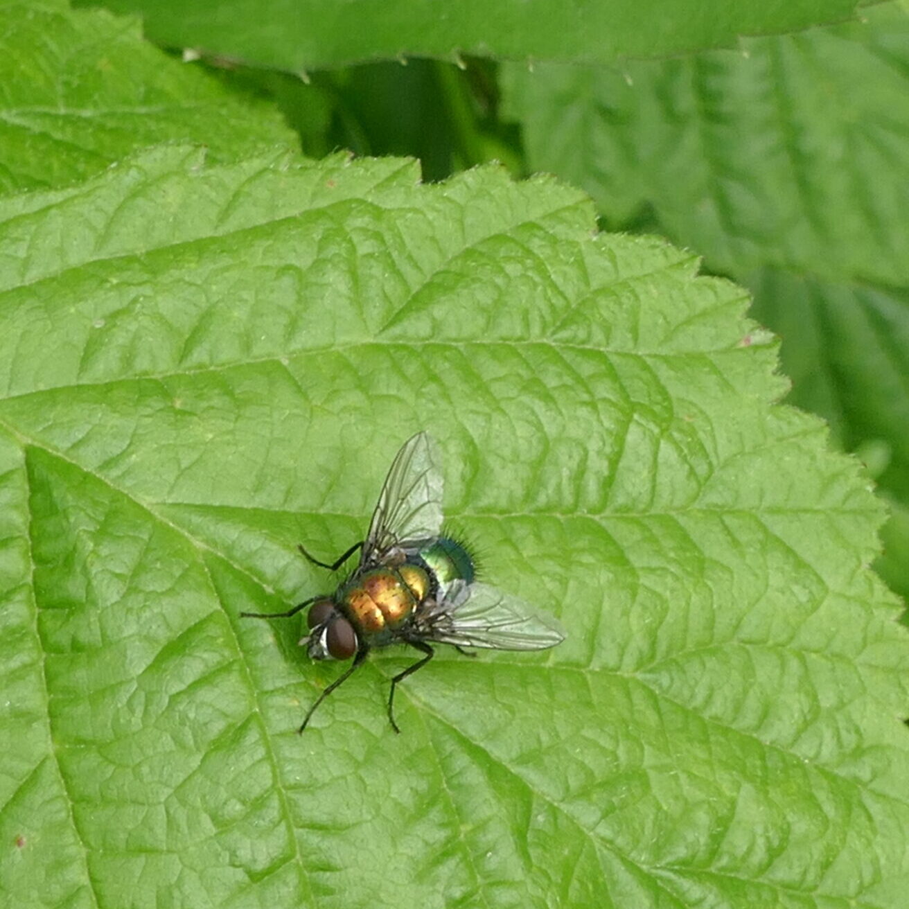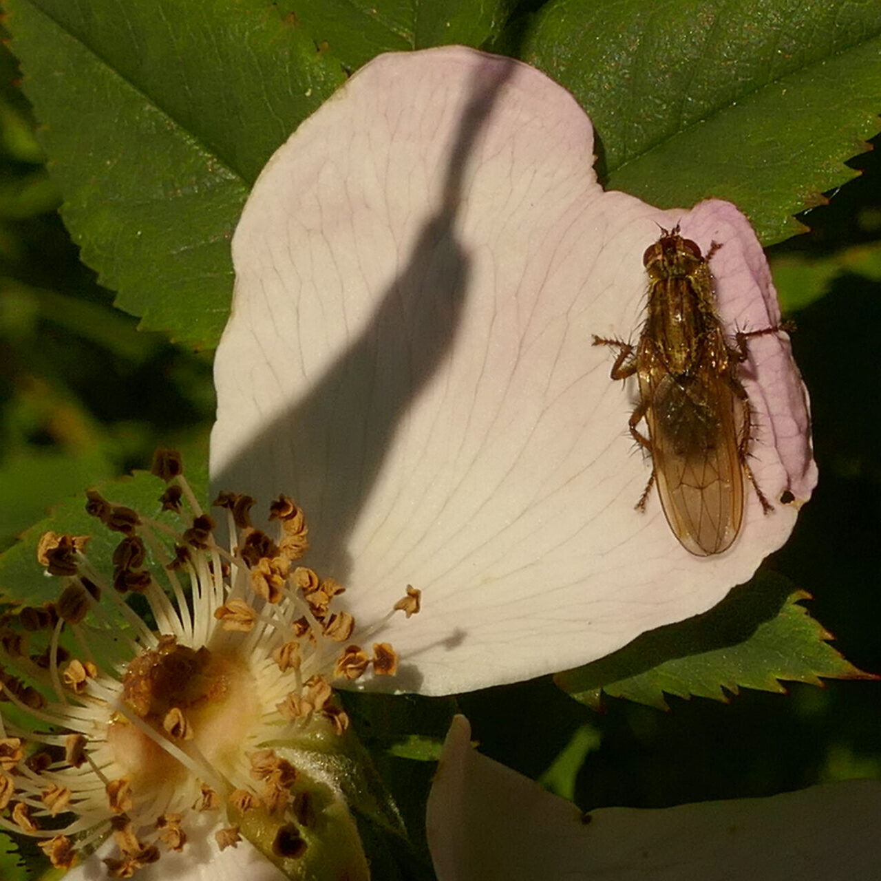 Wenn im Spätsommer die Kanadische Goldrute blüht, sind es vor allem Fliegen, die sich massenhaft auf den Blüten einfinden, um sich an Pollen und Nektar zu bedienen. In Deutschland gibt es sicher mehr als 5000 Fliegenarten, allein von der Familie der Schwebfliegen sind mehr als 400 Arten bekannt. Die genaue Artbestimmung ist oft schwierig, die unten gezeigten Fliegen-Fotos aus der Lehmkaul zeigen die Vielfalt, ohne immer eine genaue Bestimmung garantieren zu können.